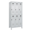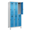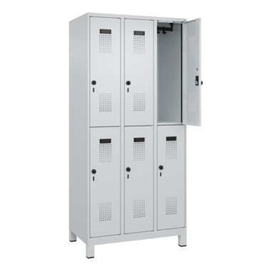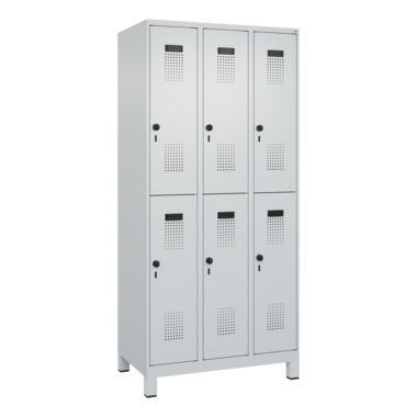 Doppelstöckiger Spind Evolo PLUS mit hochwertiger Einbrennbeschichtung für hohe UV- und Korrosionsbeständigkeit. Geschlossene und abgeschrägte Seitenprofile für leichte Innenreinigung und komfortable Entnahme von Kleidung und Taschen. Geeignet für verdeckte Kabelführung. Mit hinteren Belüftungsöffnungen oben und unten. Innen je Fach 1 stabile Garderobenstange aus Ovalprofil mit 3 verdrehsicheren Doppel-Schiebehaken inkl. Systemaufnahme. Türöffnungsbegrenzer als Schutz vor Überdehnen der Tür. Türen rechts angeschlagen, mit Soft-Anschlag und geschlossenen Seitenprofilen für höchste Stabilität. Aufhängung in stabilen Drehbolzen. Ergonomische Sicherheits-Drehriegel für Vorhangschlösser mit Bügelstärke 6 bis 8 mm. Inkl. Tür-Schutz. Kunststoff-Etikettenrahmen, schwarz, selbstklebend, inkl. Klarsichtkunststoff-Abdeckung und weißem Etikett zur individuellen Beschriftung. Achtung: Anlieferungsmöglichkeit durch Sattelschlepper muss gegeben sein.